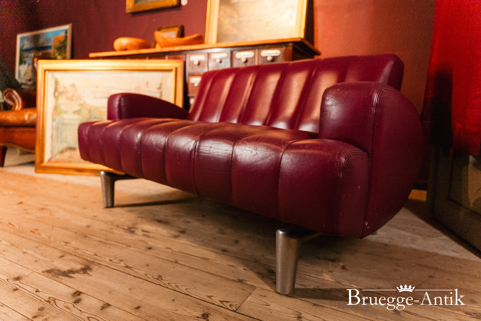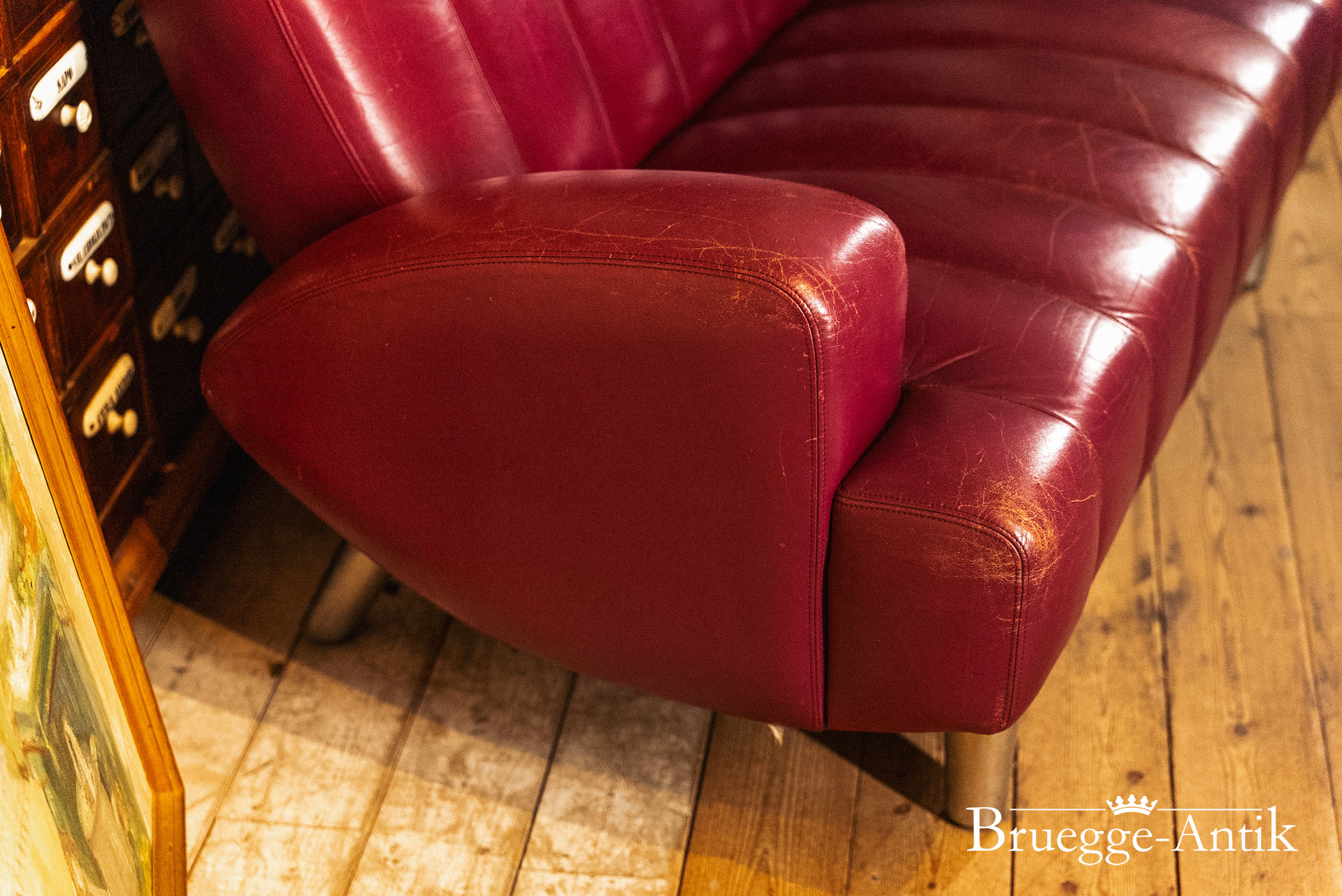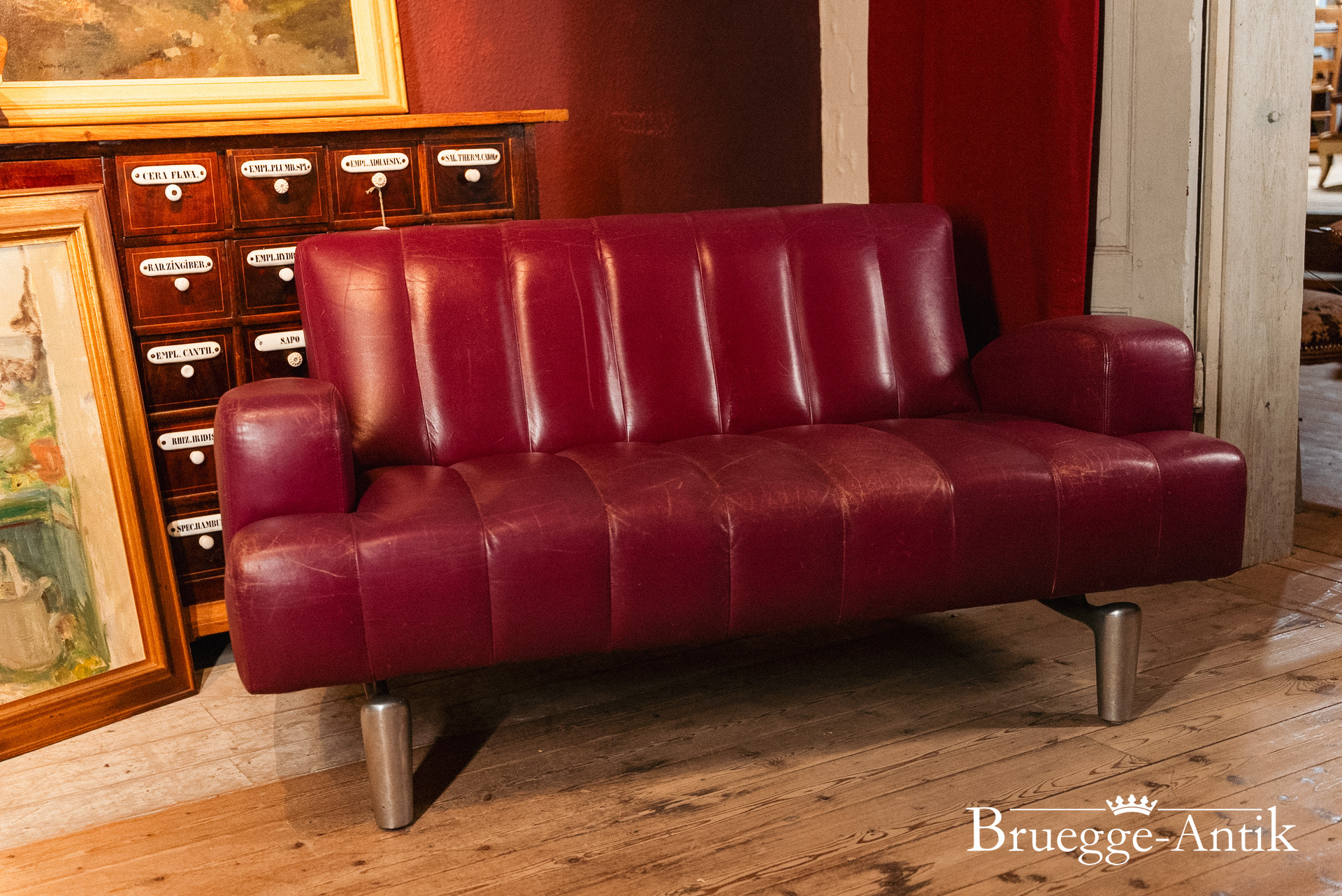 Stylischer Zweisitzer aus einem alten Cadillac in weinrotem Leder mit Chrom Untergestell. Einzelstück für das echte Vintage Wohnen, sehr stabil und bequem.