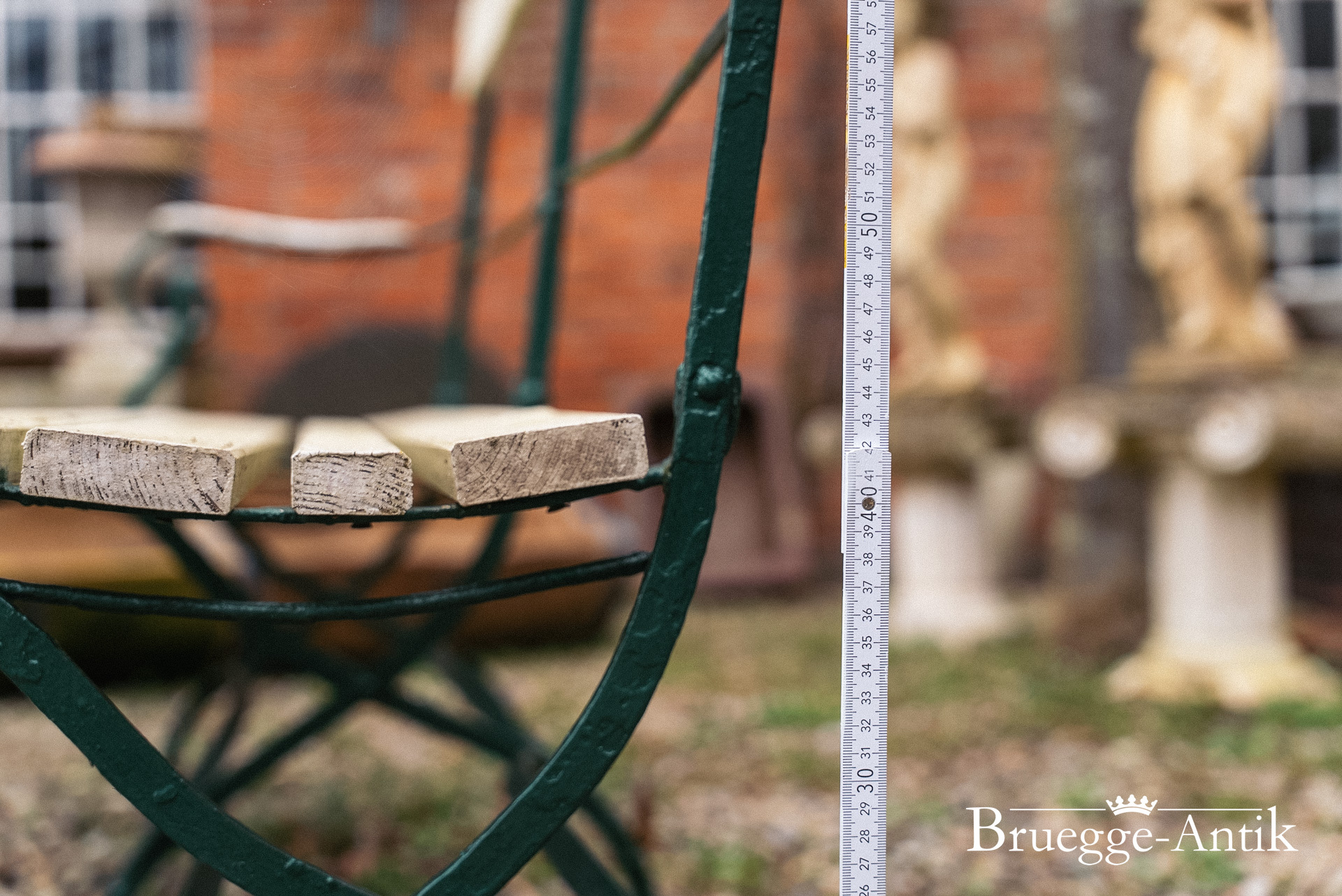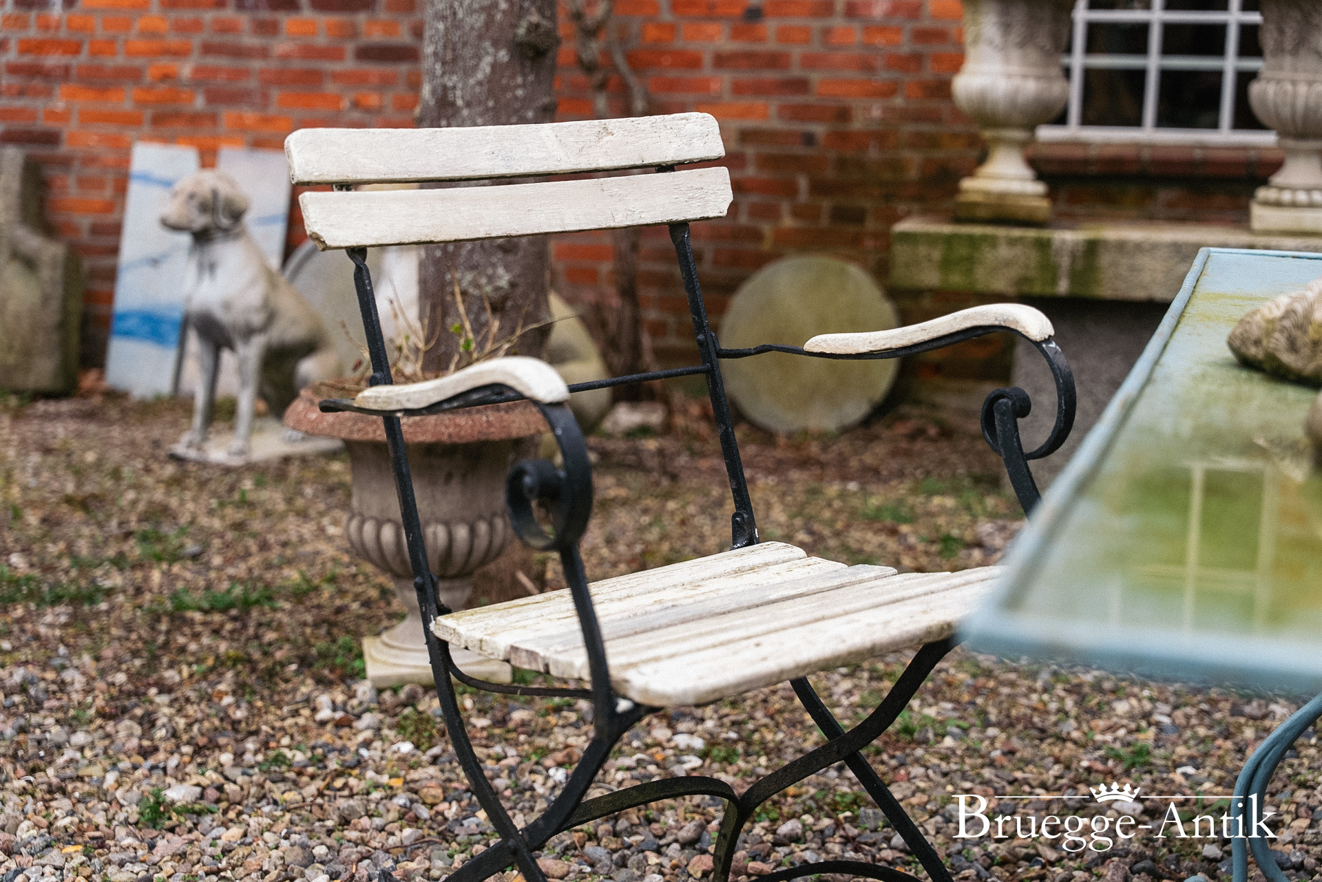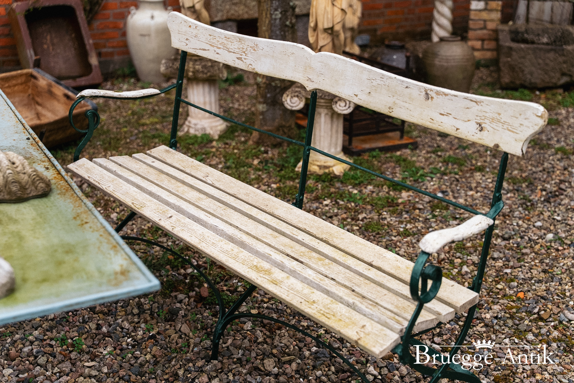 Ein bisschen Algengrün hat diese Gartengarnitur vom Meer, die sich schnell mit frischem Anstrich in das neue Frühjahr versetzen lässt. Gerne übernehmen wir hier Ihre Wunschfarbe, ein bisschen Pflege verlangen diese Gartenmöbel schon, aber ihr antiker Charme ist unvergleichlich.