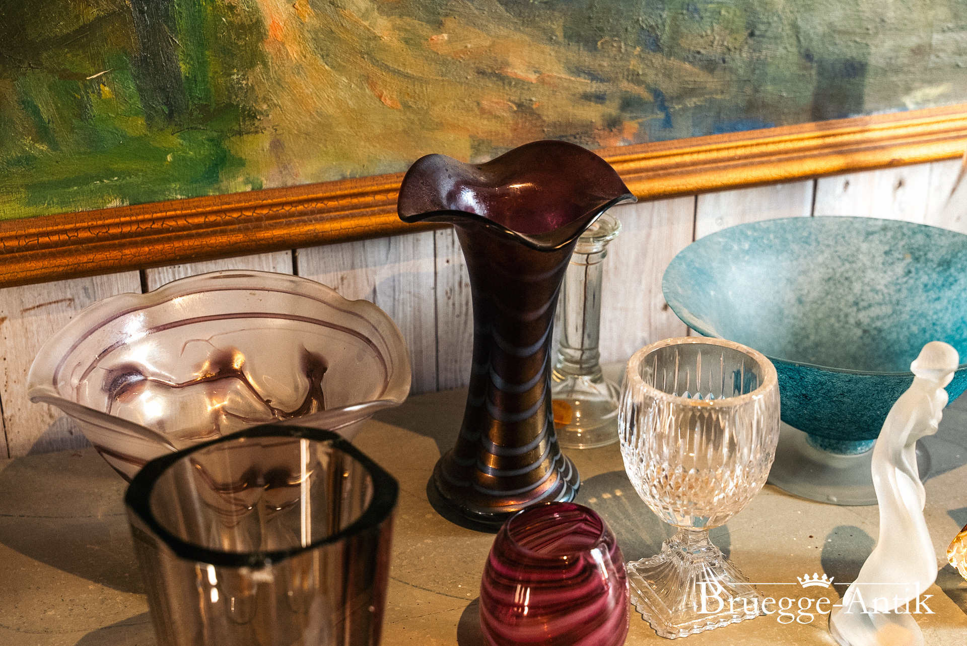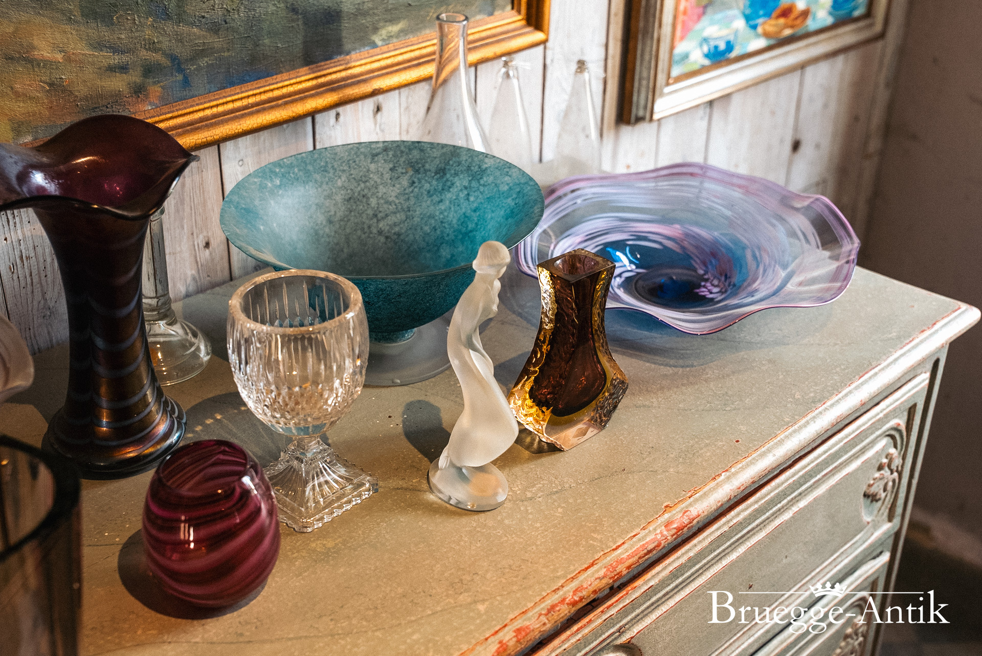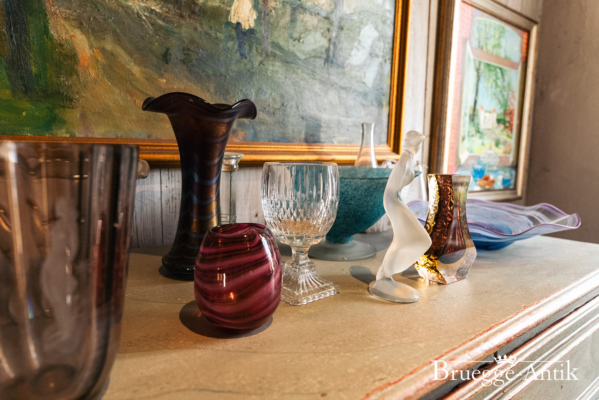 Verschiedene Gläser aus Schweden, Frankreich, Italien und Deutschland. Epochen aus dem Jugendstil bis zu den 60iger Jahren, in Brombeer- und Violetttönen, von satiniertem Glas bis hin zum klaren Glas. Stets suchen wir mit Liebe für Sie Glasobjekte aus und stellen diese neu zusammen.