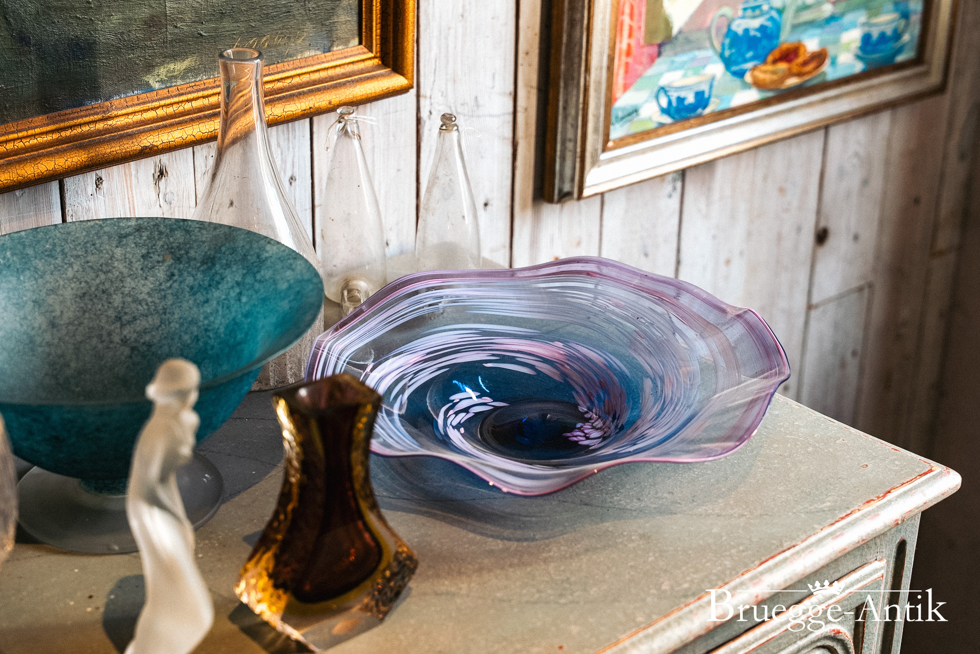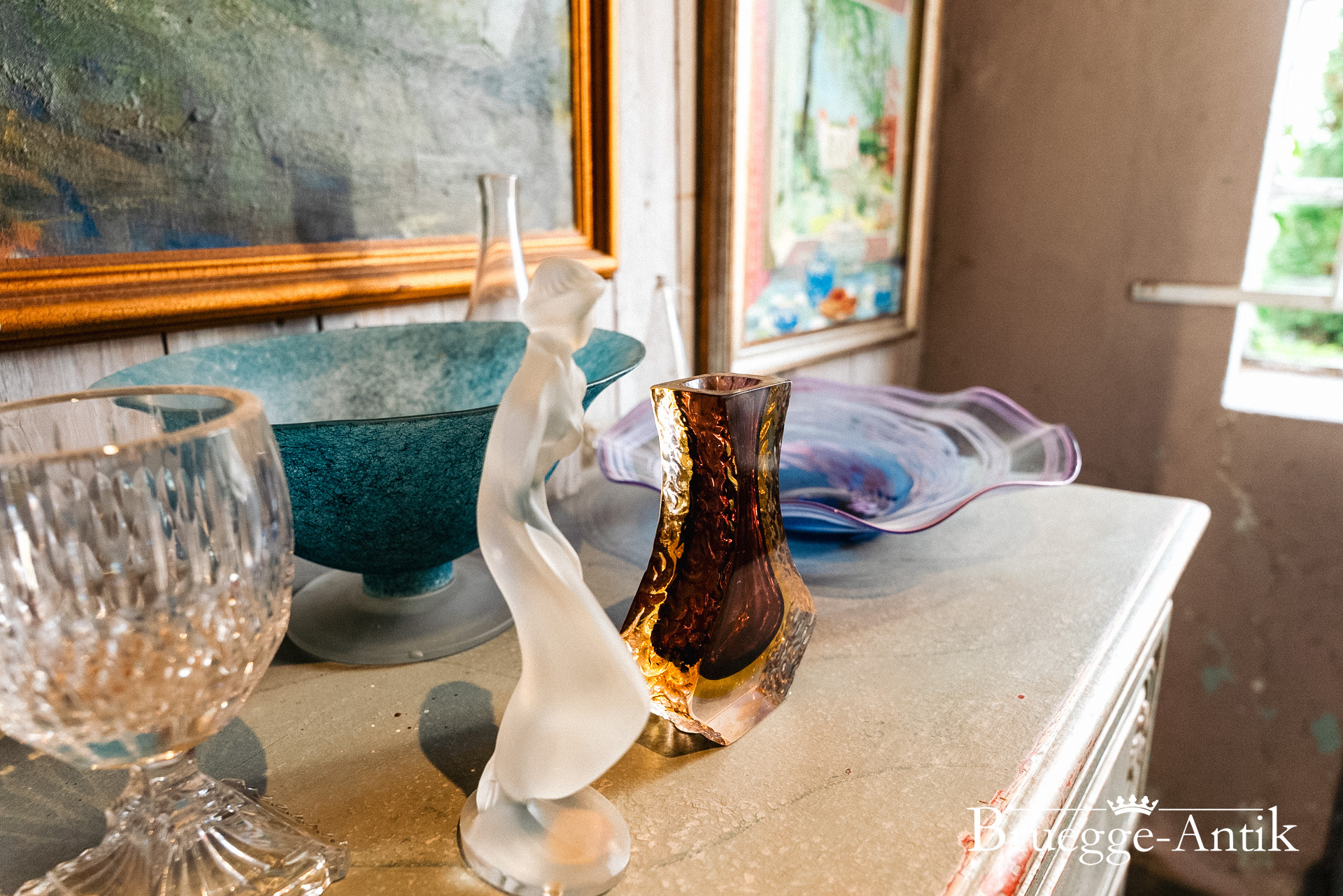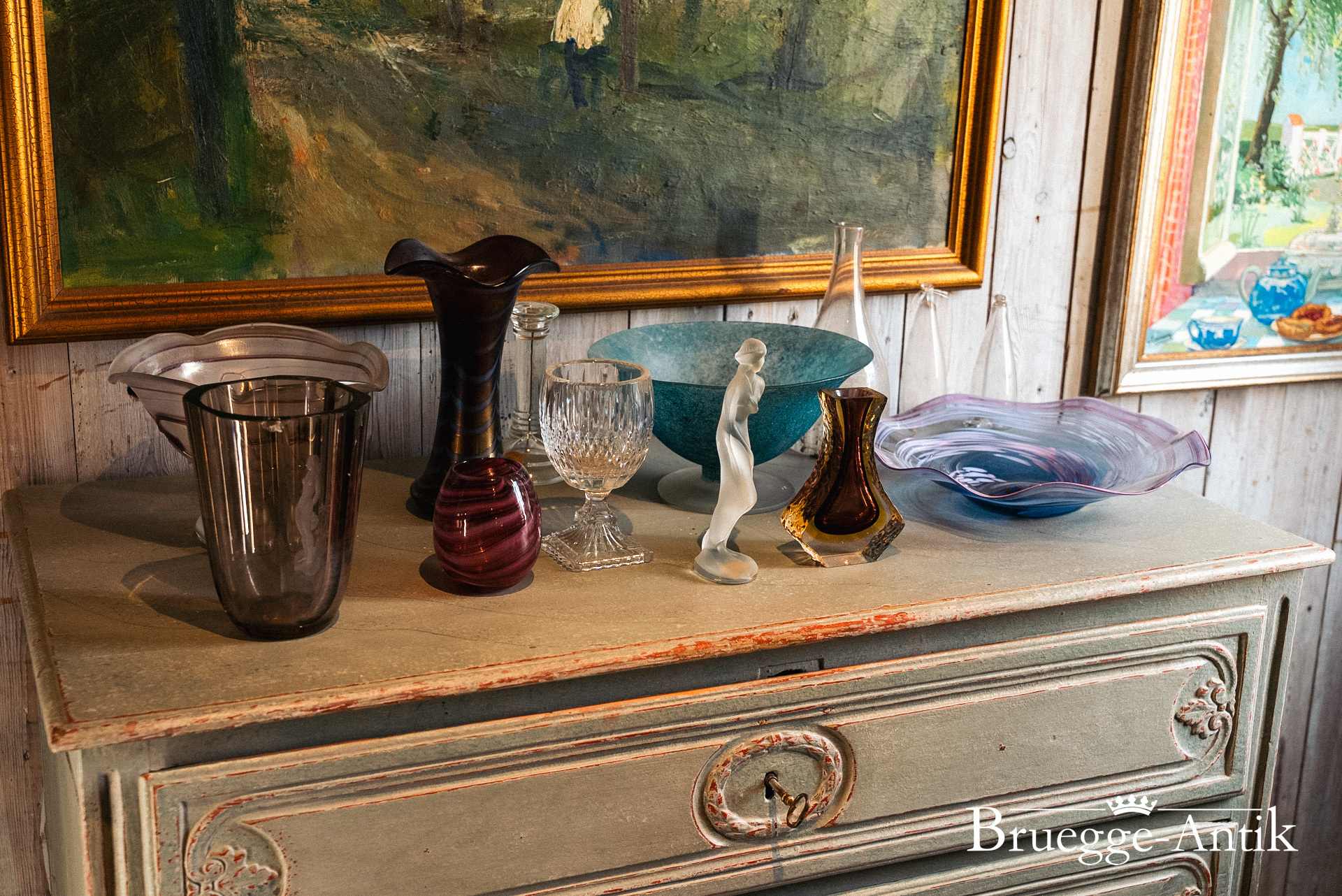 Verschiedene Gläser aus Schweden, Frankreich, Italien und Deutschland. Epochen aus dem Jugendstil bis zu den 60iger Jahren, in Brombeer- und Violetttönen, von satiniertem Glas bis hin zum klaren Glas. Stets suchen wir mit Liebe für Sie Glasobjekte aus und stellen diese neu zusammen.