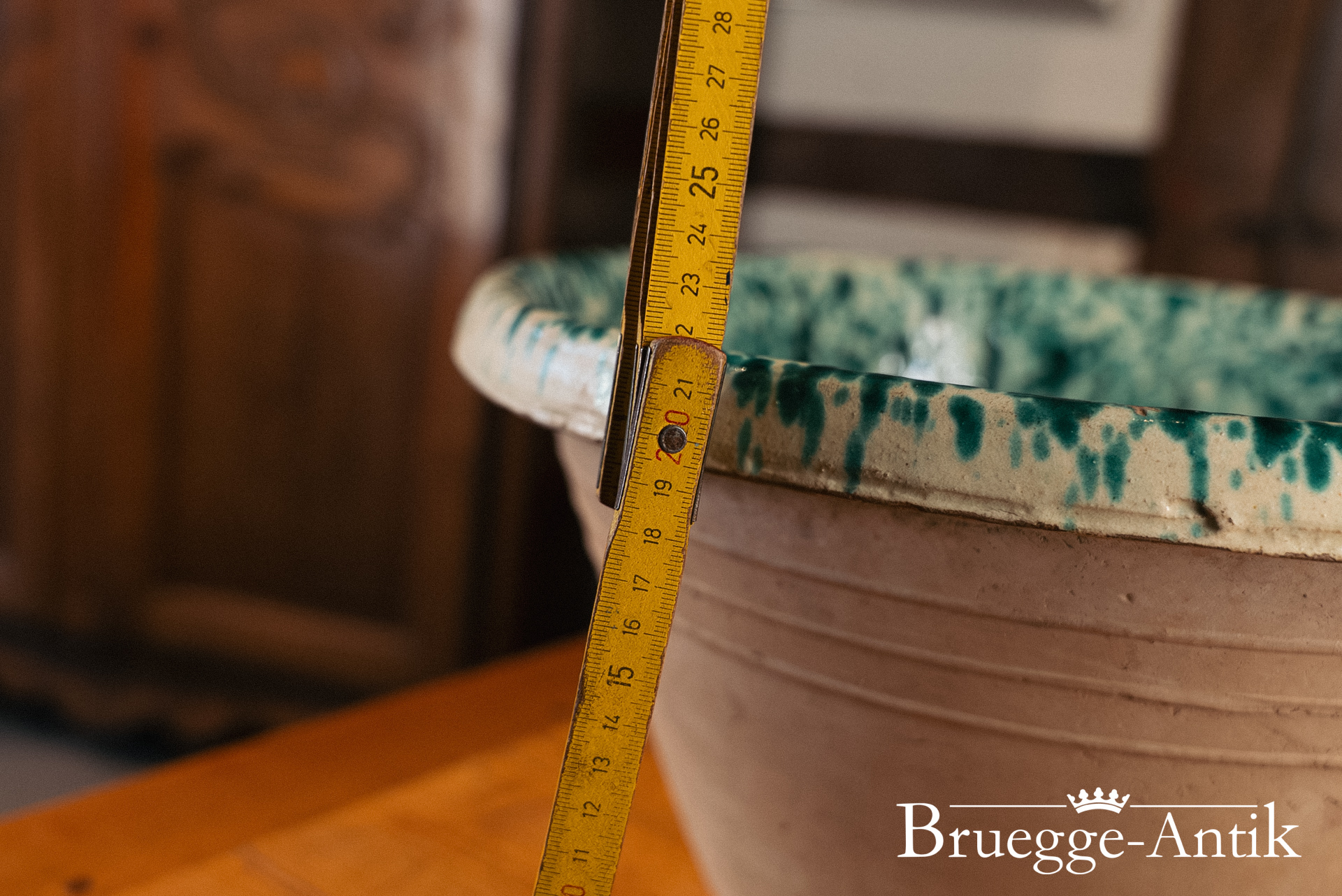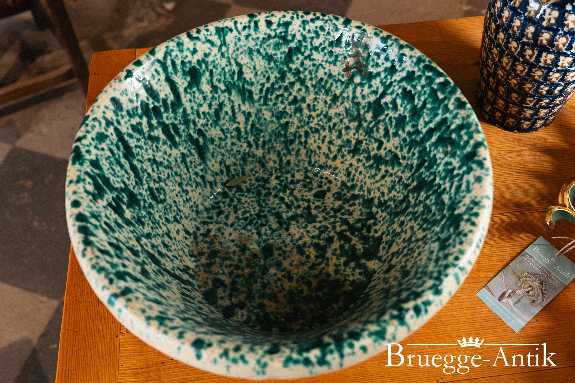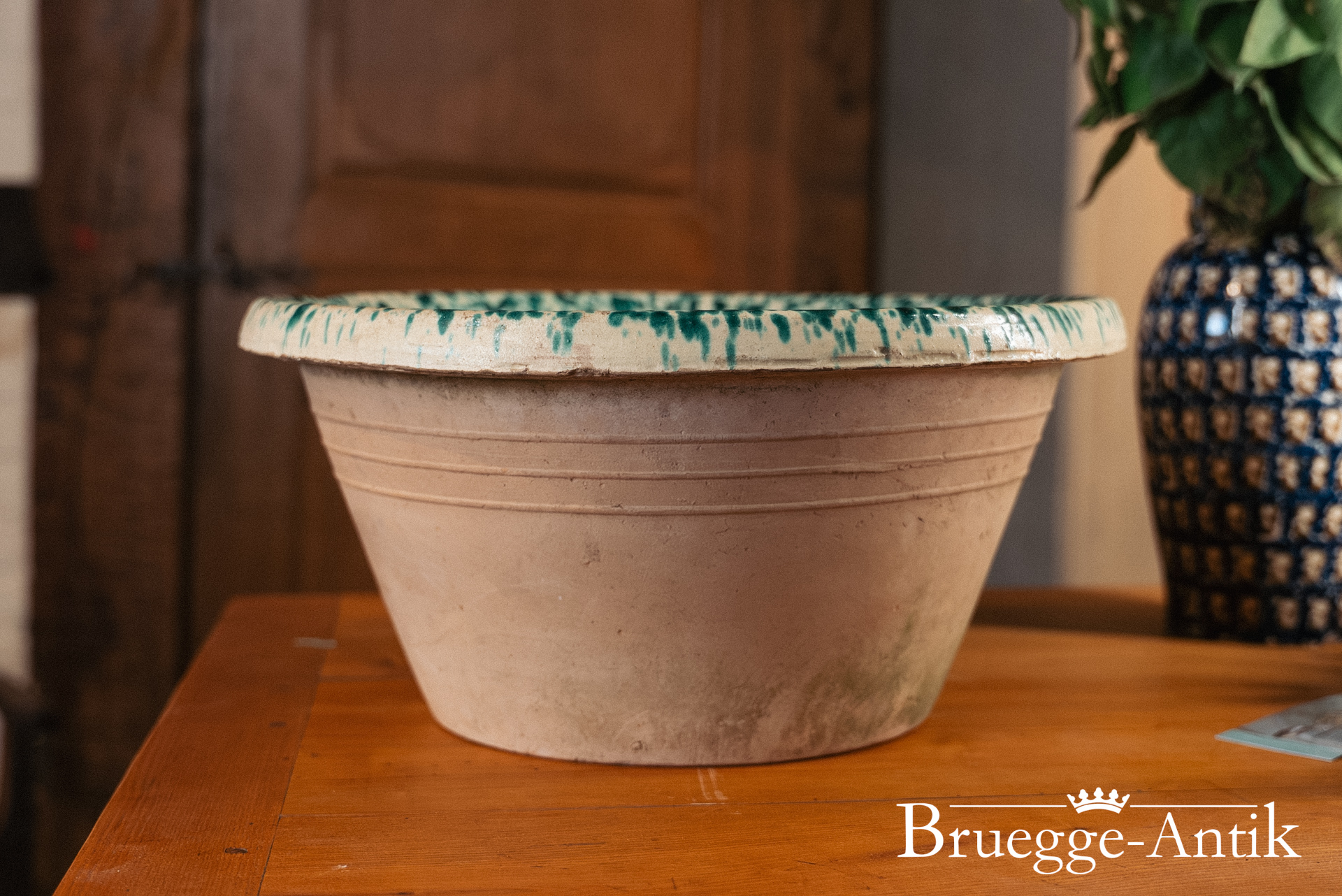 Antike Schale aus der Toskana, ursprünglich als Vorratsschale in Benutzung. Mit der grünen Spritzglasur im Inneren und der Terracotta von außen, lieben wir diese Schalen und sind stolz, dieses Exemplar in bestem Zustand präsentieren zu dürfen.